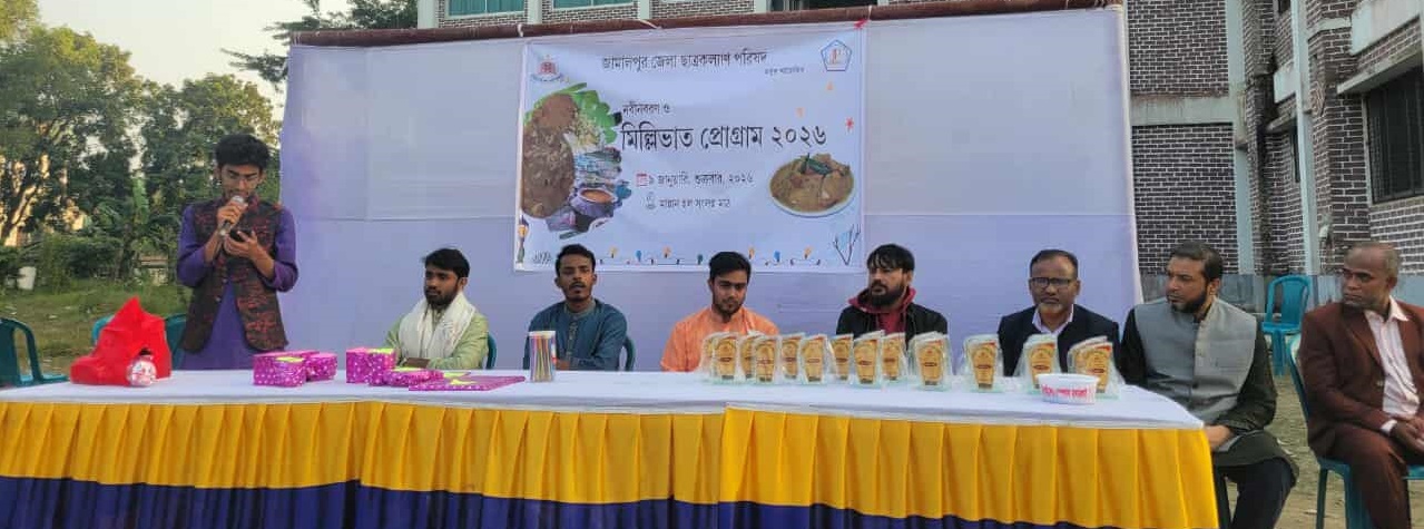 টাংগাইলে মাওলানা ভাসানী বিজ্ঞান ও প্রযুক্তি বিশ্ববিদ্যালয়ে (মাভাবিপ্রবি) জামালপুর জেলা ছাত্রকল্যাণের পরিষদের উদ্যোগে মিল্লিভাত ও নবীনবরণ অনুষ্ঠানের আয়োজন করা হয়েছে। ৯ জানুয়ারি (শুক্রবার) দুপুর ২.৩০ মিনিটে বিশ্ববিদ্যালয়ের জননেতা আব্দুল মান্নান হল মাঠে মিল্লিভাত অনুষ্ঠিত হয়। একই অনুষ্ঠানে জামালপুর জেলার নবীন শিক্ষার্থীদের বরণ করা হয়। অনুষ্ঠানে বিশ্ববিদ্যালয়ের বিভিন্ন জেলার শিক্ষার্থীরা অংশগ্রহণ করেন। অনুষ্ঠানের প্রধান অতিথি ছিলেন বিশ্ববিদ্যালয়ের উপাচার্য অধ্যাপক ড. মো. আনোয়ারুল আজীম আখন্দ। বিশেষ অতিথি হিসেবে উপস্থিত ছিলেন প্রক্টর অধ্যাপক ড. মো. ইমাম হোসেন, বিশ্ববিদ্যালয় শাখা ছাত্রদলের সভাপতি মো. সাগর নাইম ও সাধারণ সম্পাদক সাজিদুল ইসলাম দিপু। এছাড়া বিভিন্ন বিভাগের কর্মকর্তা ও কর্মচারীরাও উপস্থিত ছিলেন। জামালপুর জেলা ছাত্রকল্যাণের পরিষদের সভাপতি মেহেদী হাসান রাকিব বলেন, জেলার শিক্ষার্থীদের মধ্যে পারস্পরিক সম্পর্ক জোরদার করা এবং বিশ্ববিদ্যালয় জীবনে একটি সৌহার্দ্যপূর্ণ পরিবেশ তৈরিই এ ধরনের আয়োজনের মূল উদ্দেশ্য। ভবিষ্যতেও শিক্ষার্থীদের কল্যাণে সামাজিক ও সাংস্কৃতিক কার্যক্রম অব্যাহত রাখার আশ্বাস দেন তিনি। মিল্লিভাত অনুষ্ঠানে শিক্ষার্থীরা আয়োজনের প্রশংসা করেন এবং বলেন, ব্যস্ত শিক্ষাজীবনের মাঝে এ ধরনের মিলনমেলা শিক্ষার্থীদের মানসিক প্রশান্তি ও একাত্মতা বাড়াতে গুরুত্বপূর্ণ ভূমিকা রাখে। আয়োজনের মাধ্যমে শিক্ষার্থীদের মধ্যে ভ্রাতৃত্ববোধ, পারস্পরিক সৌহার্দ্য ও সামাজিক সম্প্রীতি আরও সুদৃঢ় হবে। পরিশেষে নবীন শিক্ষার্থীদের মাঝে ক্রেস্ট উপহার প্রদান করে অনুষ্ঠান সমাপ্তি ঘটে।