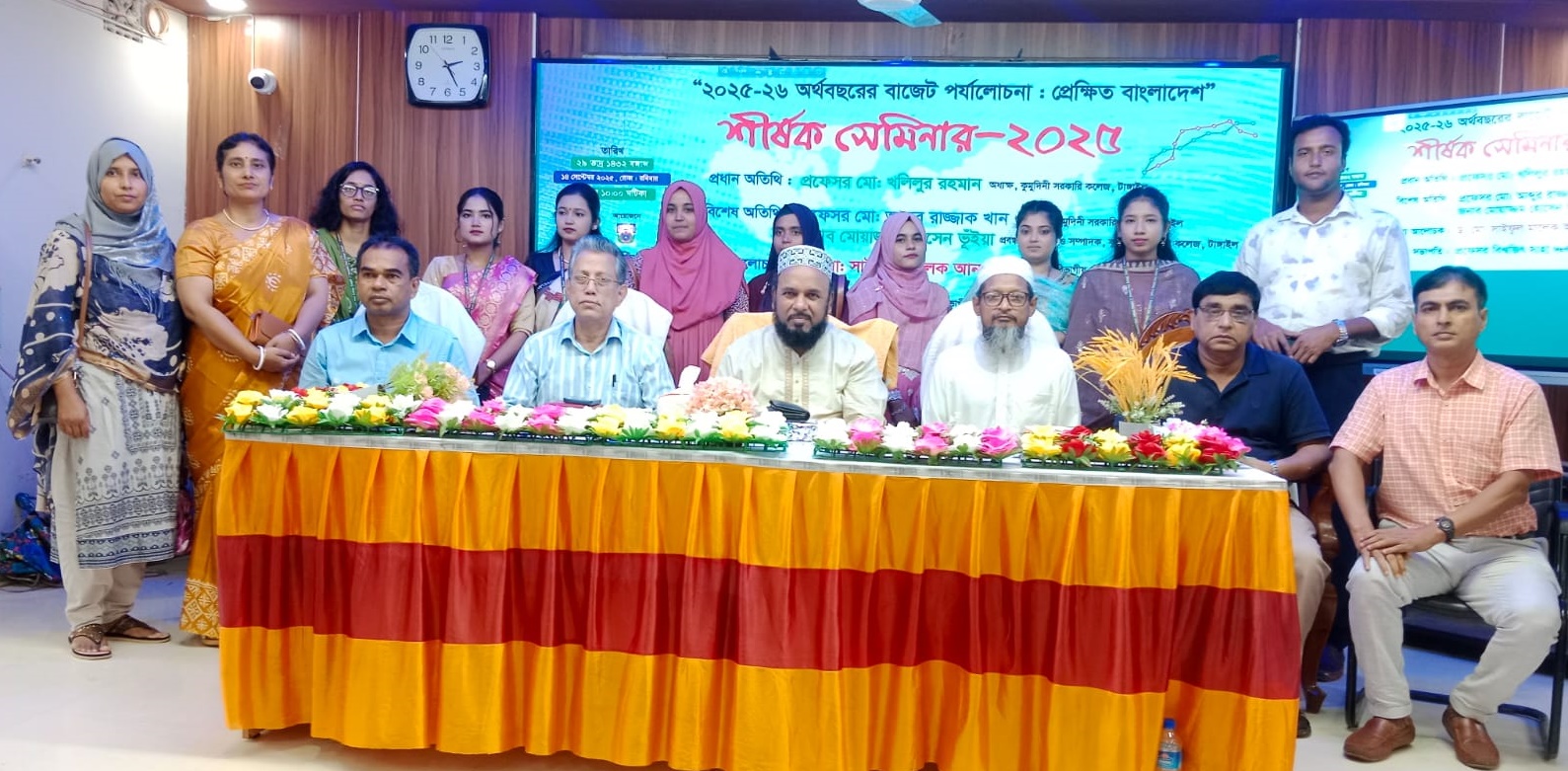 ১৪ সেপ্টেম্বর ২০২৫ (রবিবার) কুমুদিনী সরকারি কলেজ, -এর অর্থনীতি বিভাগের উদ্যোগে “২০২৫-২৬ অর্থবছরের বাজেট পর্যালোচনা: প্রেক্ষিত বাংলাদেশ” শীর্ষক এক সেমিনার অনুষ্ঠিত হয়েছে। সকাল ১১টায় কলেজ অডিটরিয়ামে সেমিনারের আয়োজন করা হয়। অনুষ্ঠানে প্রধান অতিথি ছিলেন কলেজের অধ্যক্ষ প্রফেসর মো. খলিলুর রহমান। বিশেষ অতিথি হিসেবে উপস্থিত ছিলেন উপাধ্যক্ষ প্রফেসর মো. আব্দুর রাজ্জাক খান এবং শিক্ষক পরিষদের সম্পাদক ও প্রবন্ধ উপস্থাপক জনাব মোয়াজ্জম হোসেন ভূঁইয়া। সেমিনারের মুখ্য আলোচক ছিলেন সরকারি সা’দত কলেজ, করটিয়া, টাঙ্গাইল-এর অর্থনীতি বিভাগের বিভাগীয় প্রধান প্রফেসর ড. মো: সাইফুল মালেক আনছারী। অনুষ্ঠানে সভাপতিত্ব করেন কুমুদিনী সরকারি কলেজের অর্থনীতি বিভাগের বিভাগীয় প্রধান প্রফেসর বিশ্বজিৎ সাহা। প্রধান অতিথি তার বক্তব্যে উল্লেখ করেন, “একটি দেশের উন্নয়নের জন্য তিনটি বিষয় অপরিহার্য— মানব সম্পদ, প্রাকৃতিক সম্পদ এবং মূলধন। তিনি শিক্ষার্থীদের উদ্দেশে আরও বলেন, “ভালো ছাত্রী হওয়ার চেয়ে আগে তোমাদের ভালো মানুষ হতে হবে। বক্তারা তাদের আলোচনায় ২০২৫-২৬ অর্থবছরের বাজেটের বিভিন্ন দিক বিশ্লেষণ করেন এবং বাংলাদেশের সামগ্রিক অর্থনৈতিক প্রেক্ষাপট তুলে ধরেন। অনুষ্ঠানে বিশিষ্ট গণ্যমান্য ব্যক্তিবর্গ, শিক্ষক-শিক্ষার্থীসহ গণমাধ্যমকর্মীরাও উপস্থিত ছিলেন।