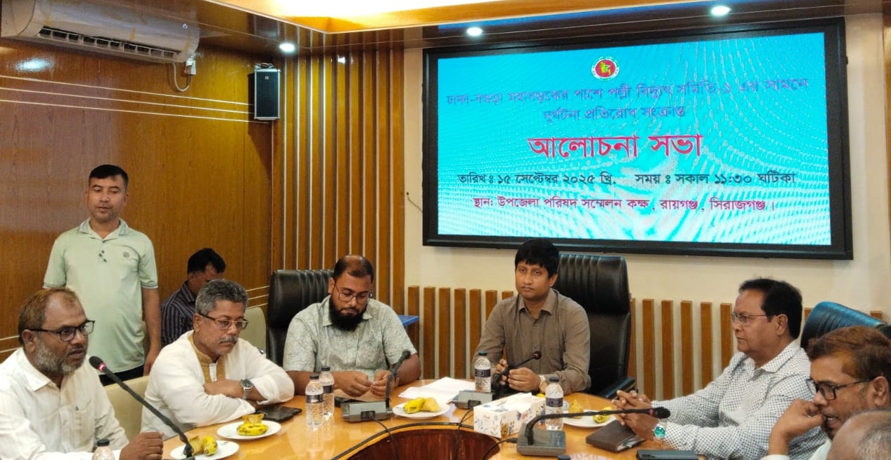 সিরাজগঞ্জের রায়গঞ্জের (ঢাকা-বগুড়া) মহাসড়কের ভুঁইয়াগাঁতী পল্লী বিদ্যুৎ অফিসের সামনে প্রতিনিয়ত সংগঠিত দূর্ঘটনা এড়াতে এক আলোচনা সভা অনুষ্ঠিত হয়েছে।