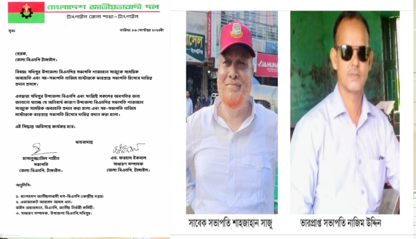 সখিপুর উপজেলা বিএনপির সভাপতি শাজাহান সাজুকে সাময়িক অব্যাহতি